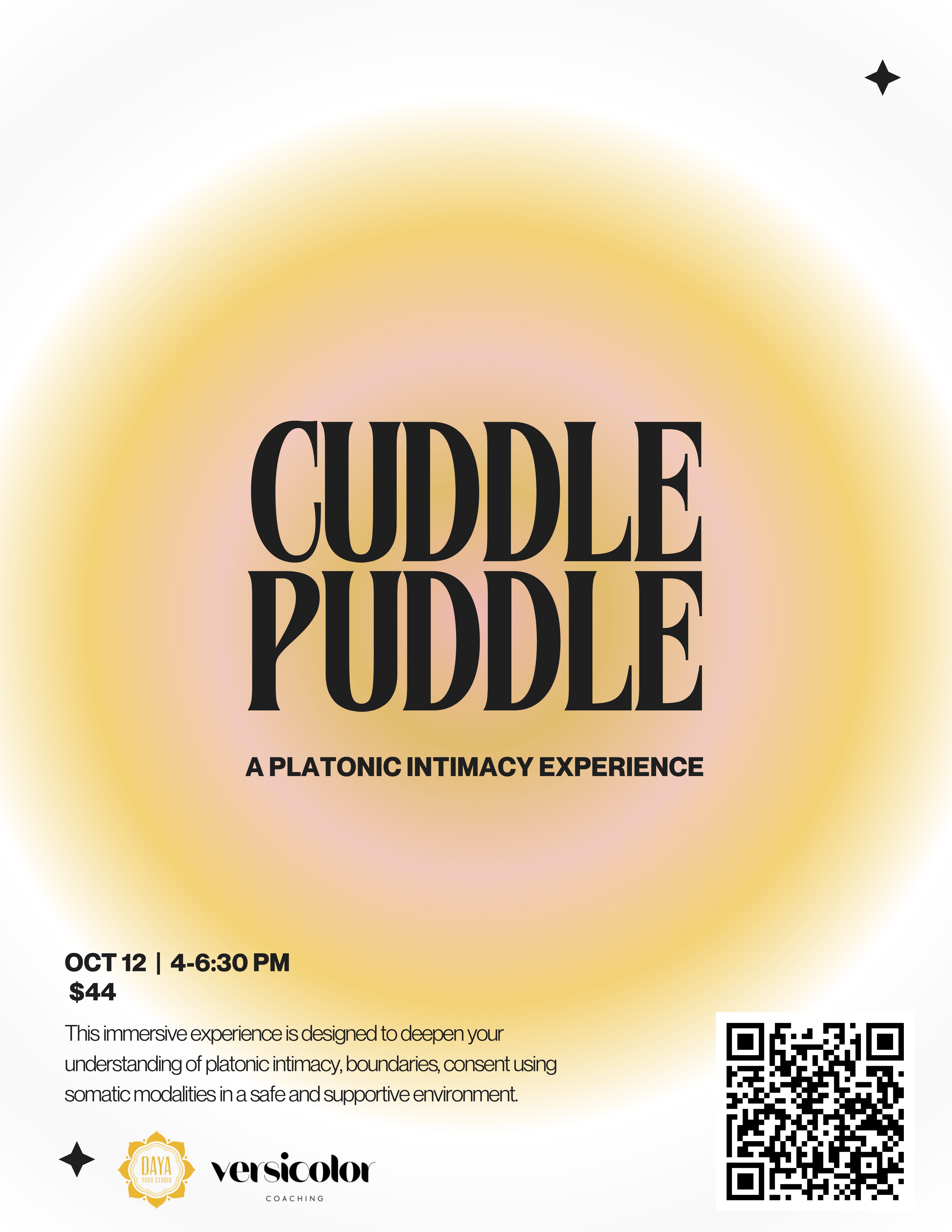 Facilitated by an experienced somatic practitioner, Jessica Langley, "Cuddle Puddle" offers a space for individuals to explore their relationship with touch, consent, and embodiment.