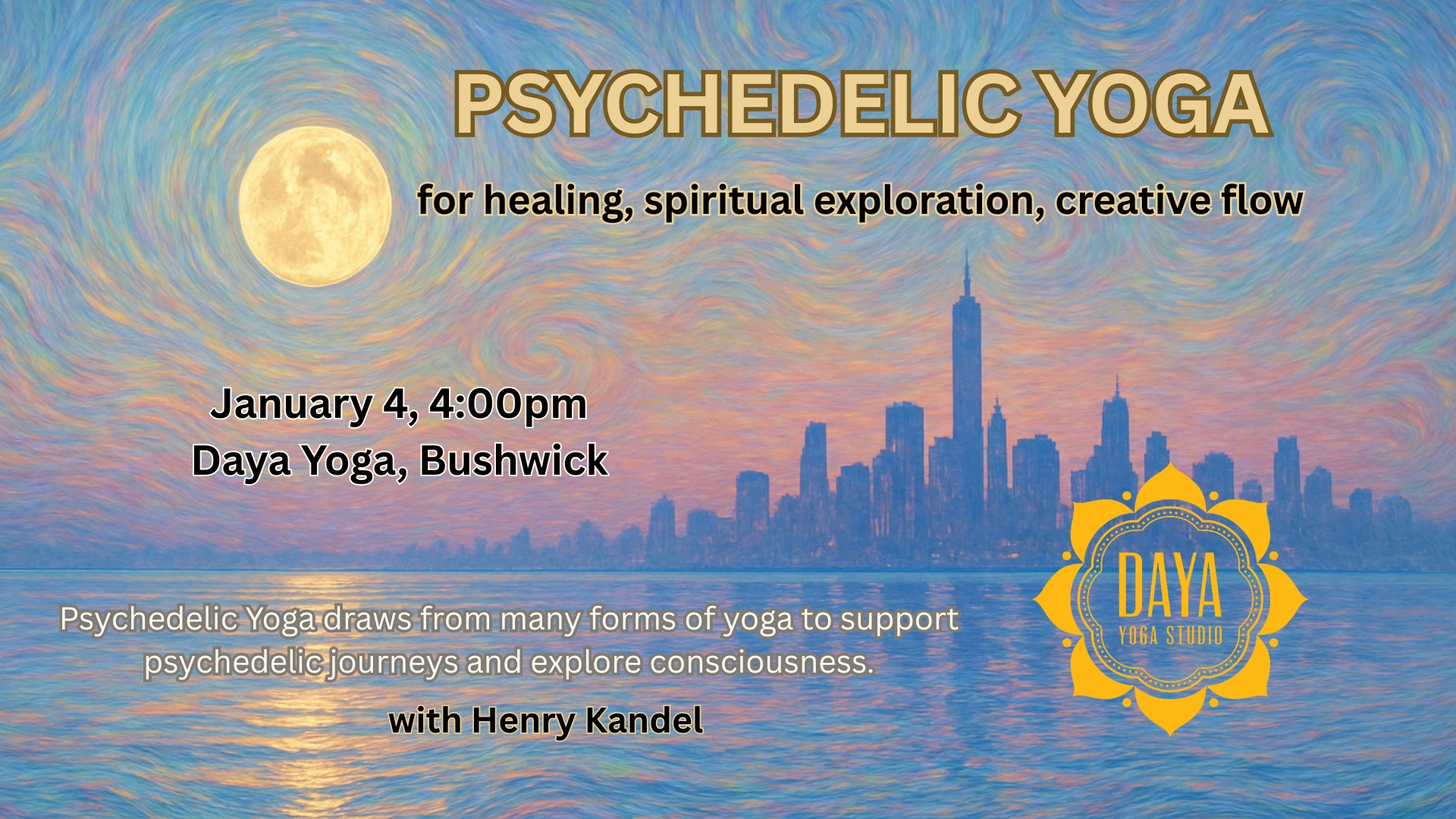 This workshop introduces Psychedelic Yoga, a collection of practices to cultivate non-ordinary states of consciousness to support healing, spiritual exploration, and creative flow. Each practice in Psychedelic Yoga can be applied to everyday life.